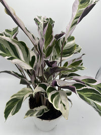 La Calathea Fusion White è una varietà della famiglia delle Marantaceae, originaria delle foreste tropicali del Sud America, in particolare del Brasile. È famosa per le sue bellissime foglie variegate con striature bianche, verdi e viola, che la rendono una delle piante d’appartamento più decorative e richieste. Questa pianta è particolarmente apprezzata per il suo aspetto esotico e la sua capacità di aggiungere un tocco di eleganza e bellezza naturale agli spazi interni.
