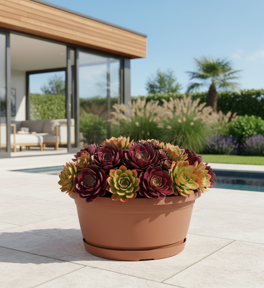 Le pareti più verticali facilitano il rinvaso, mantenendo le zolle ben dritte e stabili all’interno della ciotola. Questo rende più semplice creare composizioni ordinate ed equilibrate, anche con più piante.