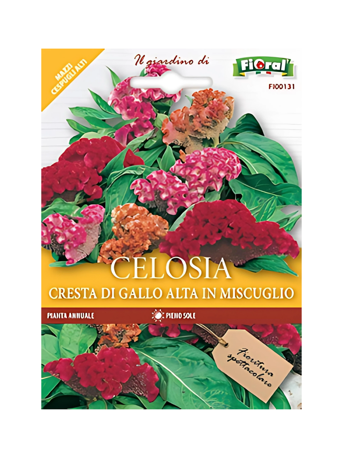 Pianta annuale dalla tipica infiorescenza crestata dai colori vivacissimi. Indicata per aiuole e da recidere. Fioritura da giugno ad ottobre. Effettuare regolari annaffiature giornaliere in estate evitando però i ristagni idrici.